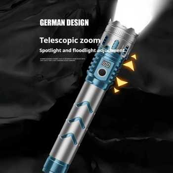 Torce elettriche ricaricabili 2000 lumen alti, torcia a LED Super luminosa con manico lungo, batteria di grande capacità, zoomabile